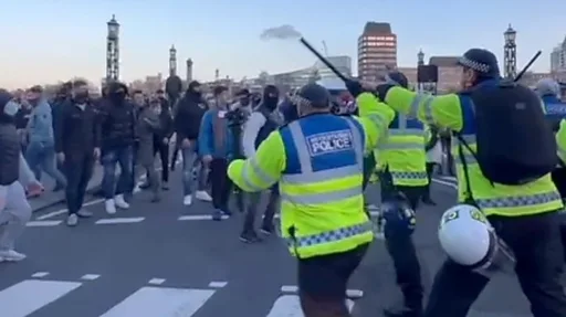 ロンドン警視庁によると、市内中心部の「セノタフ(戦没者慰霊碑)」周辺やチャイナタウンで、デモ隊同士の衝突が報告されている。