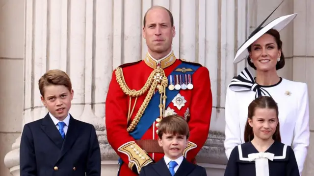 チャールズ国王の公式誕生日を祝う15日の記念行事に参加したキャサリン妃は、家族と共に馬車に乗り、バッキンガム宮殿から近衛騎兵練兵場(ホースガーズ・パレード)へ向かった。恒例の閲兵式の後は、他の王族と共にバッキンガム宮殿のバルコニーに並び、笑顔で手を振った。