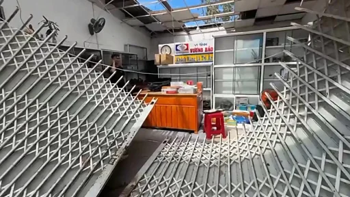 台風がヴェトナム中部を通過した際の最大風速は秒速約41メートルだった。海沿いの町では夜間、暴風雨に見舞われた。木々が根こそぎ倒れ、屋根は引き裂かれ、大きな窓ガラスが割れた。