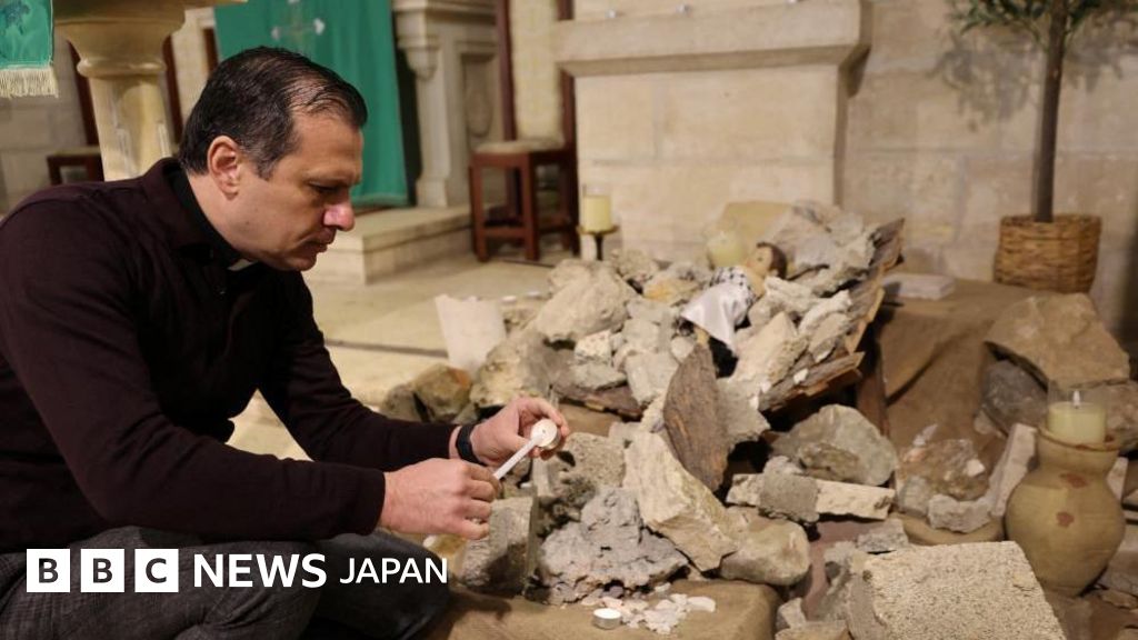 ある教会では、幼いイエスの人形ががれきの山に飾られた。