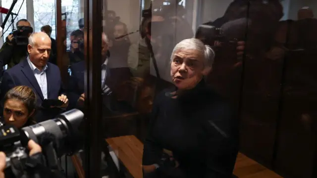 小児科医のナデズダ・ブヤノワ氏(68)は12日、手錠をかけられてロシアの法廷に出廷し、ガラスと金属でできた檻に入れられ、判決を待っていた。