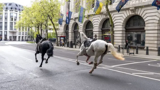 騎兵隊などによると、同隊の兵士らは24日、ロンドン・ベルグレイヴィア地区で馬7頭と訓練をしていた。馬が近くの建築工事の音に驚いて走り出し、乗っていた兵士4人が落馬した。