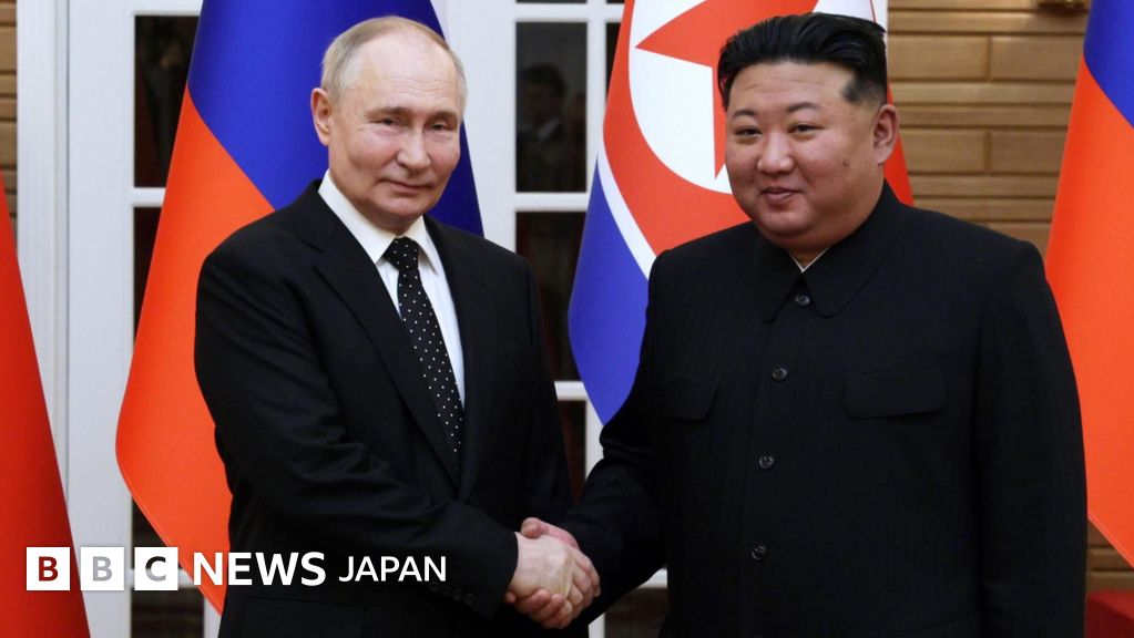 画像説明, ロシアのプーチン大統領(左)と北朝鮮の金総書記は昨年6月に平壌で会談した
