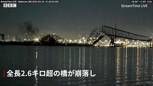 シンガポール船籍のコンテナ船「ダリ」は現地時間26日午前1時30分、47年の歴史を持つフランシス・スコット・キー橋の支柱に衝突した。