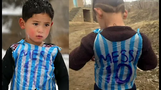 サッカーのスーパースター、リオネル・メッシ選手が大好きなアフガニスタンのムルタザ・アフマディ君は、プラスチックの袋で作った自家製の「メッシ」ジャージー姿で一躍有名となった。