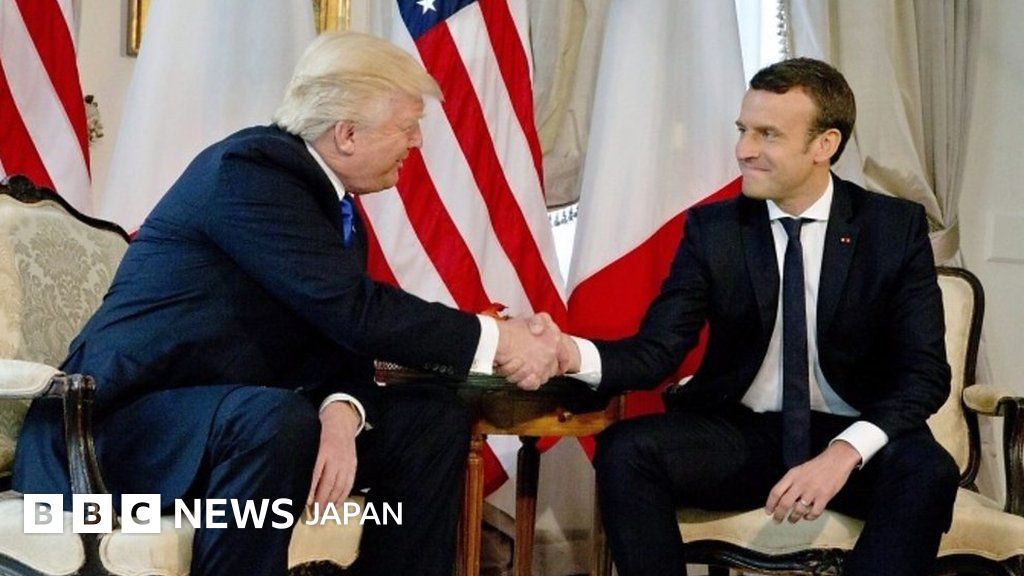 トランプ氏の「握手外交」 マクロン氏は放さず