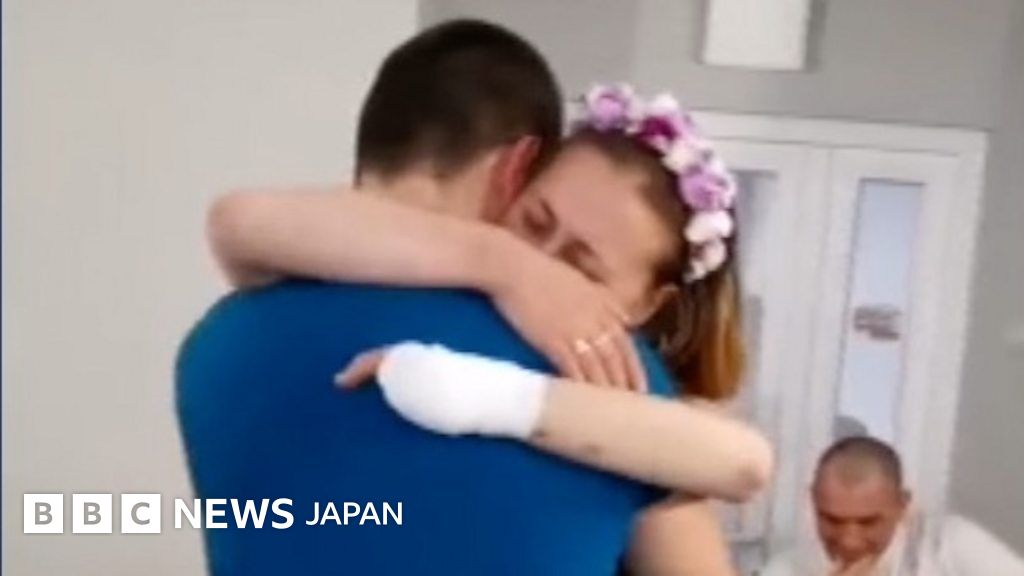 地雷で両脚失った看護師、病院で結婚式 ウクライナ侵攻