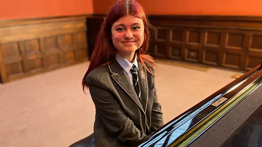 러시아가 침공했을 당시 우크라이나의 베로니카 아하포노바(15)는 폭발음을 덮기 위해 피아노를 연주했다.