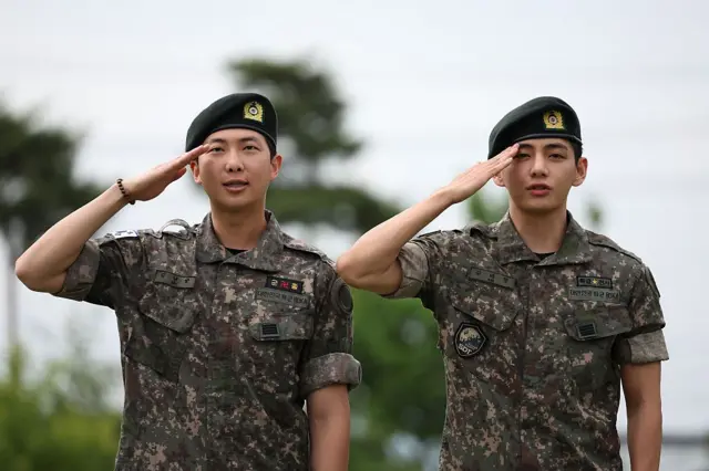 RM과 뷔는 지난 2023년 12월 나란히 입대해 육군 제15보병사단 군악대와 육군 제2군단 군사경찰 특수임무대에서 복무해왔다.