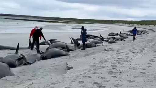 영국 스코틀랜드 북부 오크니 제도 한 해변에서 거두고래들이 수십 년 만에 가장 큰 규모로 좌초하며 이중 77마리가 폐사했다.