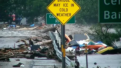 "자동 강우 측정기에 따르면, 거대하고 치명적인 홍수 파도가 과달루페강을 따라 하류로 이동 중입니다. 돌발 홍수는 이미 발생하고 있습니다."