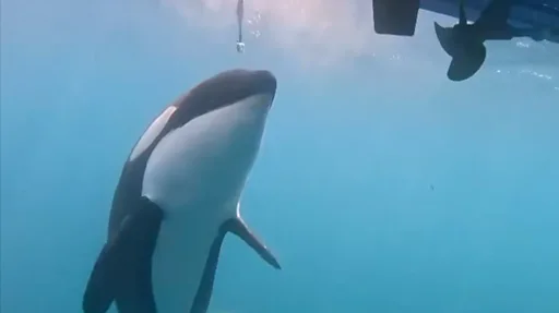 롬바르디는 “물속 방향타에서 거품이 일었다”면서 “그리고 마치 이게 장난감인 듯 범고래들이 코를 대며 밀고 있었다”고 전했다.