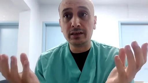 칸유니스의 유일한 보건시설인 나세르 병원의 성형외과 및 화상 진료소장인 아흐메드 모그라비 박사는 BBC에 식량 부족에 대해 설명하면서 흐르는 눈물을 참았다.