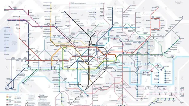여섯 개의 색이 바뀌는 런던의 유서깊은 전철 노선도