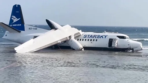 소말리아의 한 항공사가 기술적 결함이 발생한 여객기를 공항 인근 해안가에 비상 착륙시켜 탑승자 55명 전원의 생존을 이끌어낸 조종사를 칭찬했다.