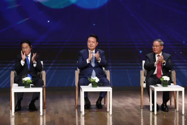 한국 윤석열 대통령은 27일 오전 청와대 영빈관에서 기시다 후미오 일본 총리, 리창 중국 총리와 제9차 한중일 정상회의를 열며 "3국 협력의 새로운 출발과 도약을 기약하는 역사적인 이정표가 되길 기대한다"고 밝혔다.