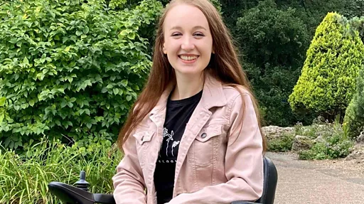 척수성 근위축증을 앓고 있는 달리는 전동 휠체어에 앉아 여러 뷰티 브랜드를 위한 SNS 마케팅 캠페인에 참여했다.