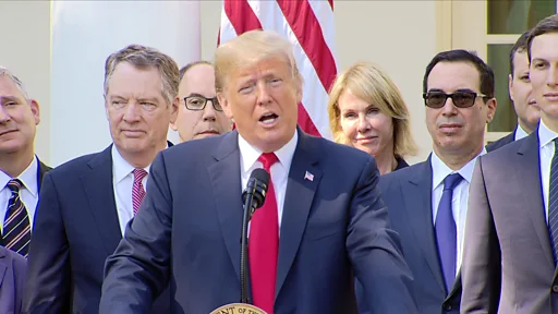 백악관에서 트럼프 대통령은 새로운 협정이 관세를 앞세운 자신의 협박의 정당성을 입증했다고 말했다.