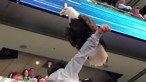 독수리 한 마리가 관중석에 날아와 한 관중의 팔에 앉았다. 수만 명 관중의 열렬한 응원을 받은 독수리는 다시 날아올라 또 다른 관중에게 앉았다.