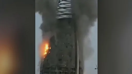 해당 건물은 원뿔형 구조에 유리 외장으로 마감됐다. 불이 붙은 원인은 아직 명확하지 않다. 부상·사망은 아직 보고되지 않았다.