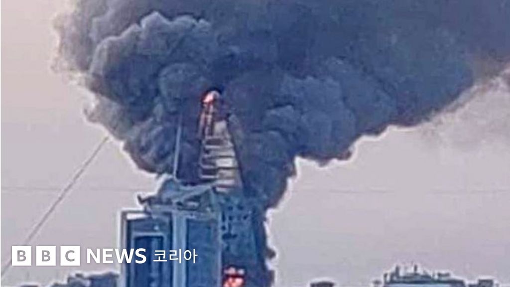 17일(현지시간) 온라인에 올라온 영상에는 유명한 '그레이터 나일 석유회사 타워'가 화염에 휩싸인 모습이 담겼다.