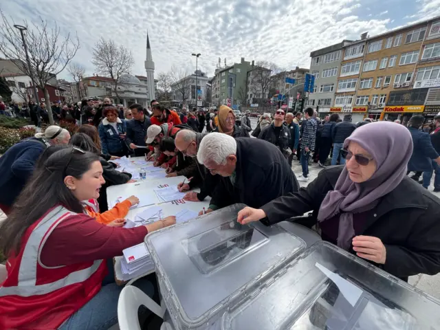 23-март күнү эртең менен камакка алынган Стамбул шаарынын мэри Экрем Имамоглу алгачкы шайлоого жалгыз талапкер катары катышты.