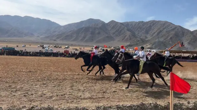 Би-Би-Си бул ат чабышка Кыргызстандан кайсы аттар барды, кимдер чаап жатат деген суроолор менен саяпкер Манасбек Султановго кайрылып, ат жалында маек курду. Саяпкер азыр ошол жерде күлүктөрдү коштоп бара жаткандардын бири.
