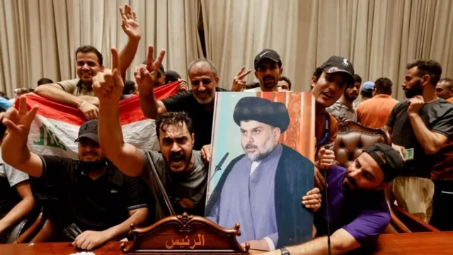 Шиит лидери Муктада ас-Садрдын жүздөгөн тарапташтары 27-июлда Багдаддагы кайтарылган “Жашыл зонага” басып кирип, Ирак парламентинин имаратын ээлеп алышты.