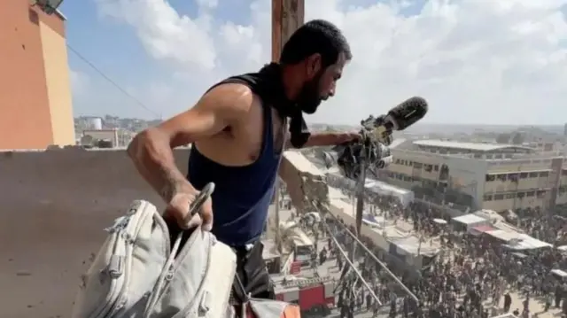 Хусам аль-Масри Reuters агенттигинде оператор болуп иштечү. Агенттиктин маалыматына караганда, ал түз эфирге чыгып жатып, биринчи соккуда мерт болгон. Анын тарткан кадрларын дүйнөдөгү көптөгөн маалымат агенттиктери, анын ичинде Би-Би-Си да колдонду.