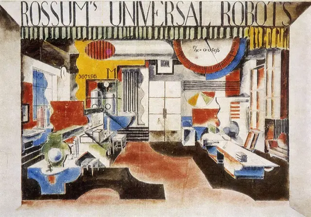 1920-жылы күндөрдүн биринде чех жазуучусу Карел Чапек сүрөтчү агасы Йозефтен кеңеш сурайт. Карел жасалма жумушчулар жөнүндө пьеса жазып, бирок аларга ат коё албай жаткан эле. “Мен аларды лаборанттар деп атайын десем, бир аз көтөрө чалгандай болуп калабы дейм”, - деди ал сүрөт үстүндө берилип иштеп жаткан Йозефке. “Анда робот деп кой”, - деп жооп берди кыл калемин оозуна тиштеген Йозеф. Ошол учурда Петроградда (мурунку Санкт-Петербург) орус жазуучусу Евгений Замятин роман жазып жаткан, анын келечектеги жогорку технологиялуу диктатурасы аягында Чапектин роботторундай таасирдүү болуп чыккан.