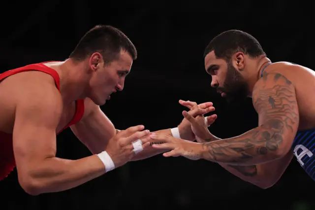 Айаал Лазарев бүгүн эркин күрөш боюнча 125 килограмм салмакта алгачкы беттешинде утулуп калды. Ал 1/8 финалдык баскычта АКШлык спортчу Гейбл Стивенсон менен кармашты. Америкалык балбан Лазаревди 10:0 эсебинде жеңди. Эми эгер Стивенсон финалга чейин жетсе, Лазаревде коло байге үчүн күрөшүүгө мүмкүнчүлүк болот.