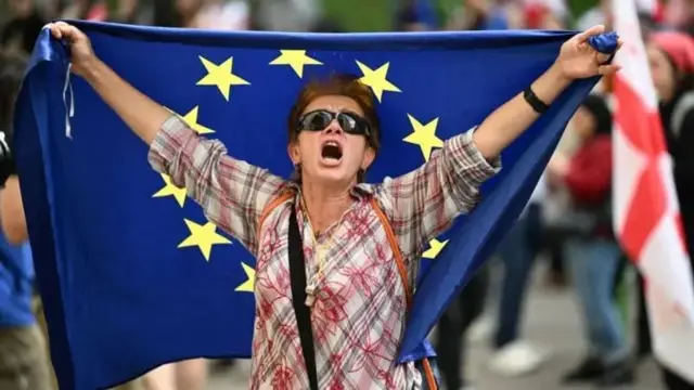 Былтыр декабрда, Грузия Евробиримдикке мүчөлүккө кандидат статусун алганда перспектива даана көрүнүп калган. Бирок бир нече айдан соң, масштабдуу каршылыктарга карабастан “Сырткы таасирдин ачыктыгы жөнүндө” (башкача айтканда, “чет өлкөлүк агенттер” тууралуу) мыйзам кабыл алынып, өлкөнүн Евробиримидикке кирүү процесси токтоду.