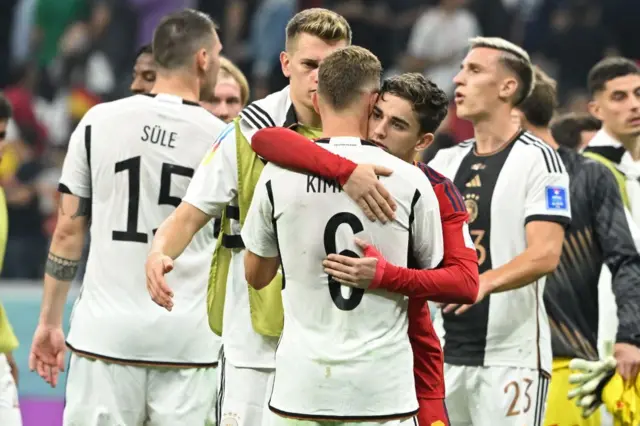 Бактысын чабуулдан издеп жатып, оюн бүтөргө жети мүнөт калганда абалды теңеп кетишти. Жалпы эсеп: 1:1. Ошону менен оюндун убактысы дагы соңуна чыгып, Германия алгачкы бир упайы ал эми Испания төрт упайы менен көч баштап калды.