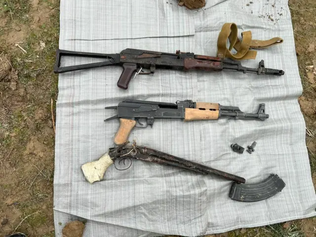 Текшерүү учурунда УКМК кызматкерлери тарабынан 12 даана Калашников автоматы, 2 даана "Беретта" жана "Макаров" согуштук тапанчалары, 2 даана (кесилген стволдуу) жылмакай мылтык, 11 даана Калашников автоматынын магазини жана бир топ ок-дарылар табылган.