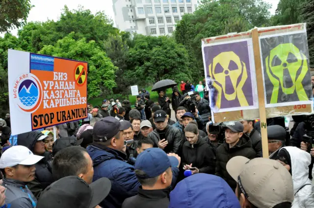Анда Балыкчы шаарынан алыс эмес жерде жайгашкан уран кенинин бир бөлүгүн иштетүү аракети болуп жатыптыр деп нааразы болгондор бийликке кескин талаптар менен чыгышкан эле.