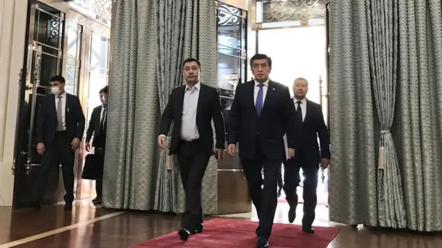 "Ала-Арча" мамлекеттик резиденциясында Жогорку Кеңеш кезексиз жыйынга чогулуп, президент Сооронбай Жээнбековдун отставкасын кабыл алды. Андан соң премьер-министр Садыр Жапаровго президенттин милдетин аткаруу укугу берилди.