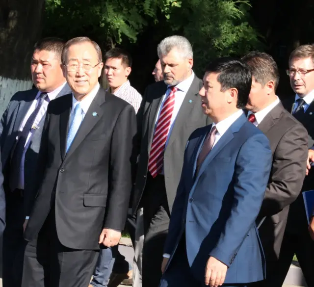 Ал Ошко жасаган иш сапары учурунда мындан беш жыл мурда болгон кандуу июнь окуяларынын кесепеттерин жоюу иштеринин жыйынтыгы менен таанышууда. Пан Ги Мундун Ошко сапарын кыргыз өкмөтүнүн башчысы Темир Сариев коштоп жүрдү.