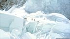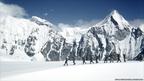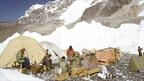 • Коштоочулар жана жардамчылар лагерге керектүү каражаттарды жеткирип турушкан. Сүрөттө оң жакта Лхо Ла ашуусу. Бул жерде жогору жактагы аскалардан улам-улам көчкү кулап турган.