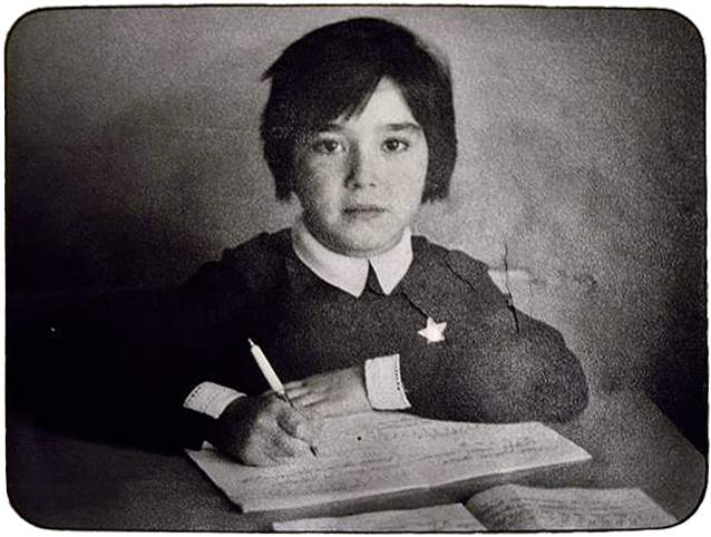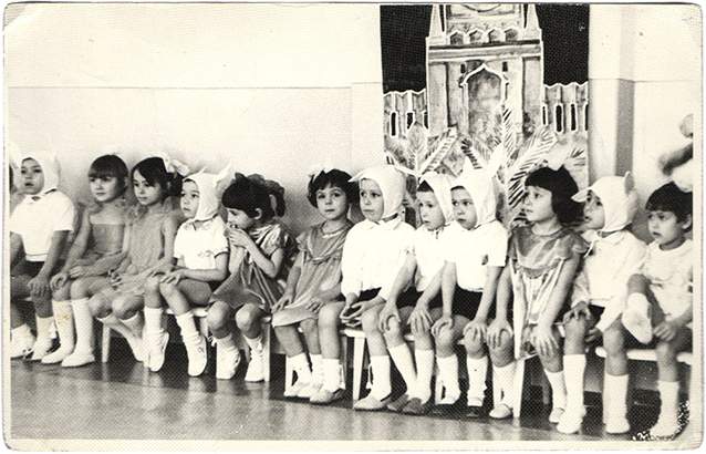 Бул мен бала бакчадагы өзүмдүн группам менен. Революцияны майрамдаган ар жыл сайын бизде өзгөчө концерт болор эле. Биздин мугалимдер Ленин жер үстүндөгү эң мээримдүү жана эң акылдуу адам деп айтышчу. Мен алтыга чыкканда, апам мени тиш доктурга биринчи жолу алып барды. Мен коркуп жаттым. Коридордо бир аз мүнөткө Лениндин айкели менен жалгыз калдым. Ошондо анын жанындагы отургучка чыгып, Ленинди бетинен бир өөп алдым. Ал мага күч жана дем берет деп ишенип алган элем.