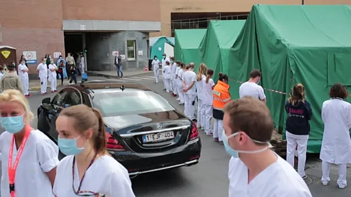 Телеканалдар көрсөткөн кадрларларга караганда, дарыгерлер менен медайымдар ооруканага бараткан жолдун эки жагына катар тизилип, премьердин кортежи жакын келгенде андан тескери бурулуп кетип жатышты. Алар Бельгия өкмөтүнүн пандемия шартында ооруканаларга жасаган мамилесине өзүнүн нааразылыгын ушундай жол менен билдиришти.