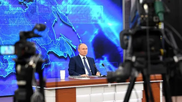 Пандемиядан улам быйылкы басма сөз жыйыны башка форматта өттү. Путин Москванын четиндеги Ново-Огареводогу резиденциясынан туруп, видео байланыш аркылуу журналисттердин суроолоруна жооп берди.