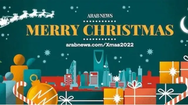 Arab News басылмасынын биринчи бетиндеги макала «Рождество бакыт-таалай алып келсин» деп аталып, Сауд Аравиясынын баш калаасы Эр-Рияддын асманында чана тартып бараткан бугулардын сүрөтү менен чыкты.