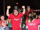 Last week after Koreas 2-1 victory against Togo there was a huge celebration in Wu Dao Kou, with delighted Korean fans (han2 guo2 qiu2 mi2) taking to the streets, wearing their national red colours, flags in hand. The local Chinese police (jing3 cha2) however were not impressed and so Korean games were banned from being screened at the beer garden. To my knowledge the celebrations were all good natured and really helped bring the World Cup to Beijing, so I was a bit disappointed by this decision. Korea have since been knocked out of the competition, so I'm sure the local police are breathing a sigh of relief.