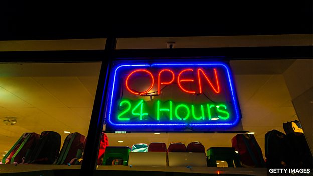 Around the clock 没日没夜地,全天候地