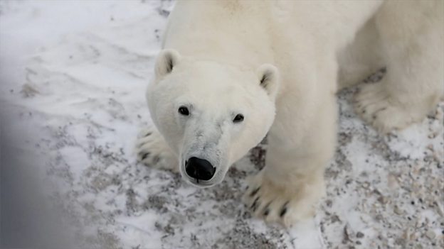 Filming team encounters polar bear near Churchill, Canada 一拍摄团队在加拿大丘吉尔偶遇北极熊
