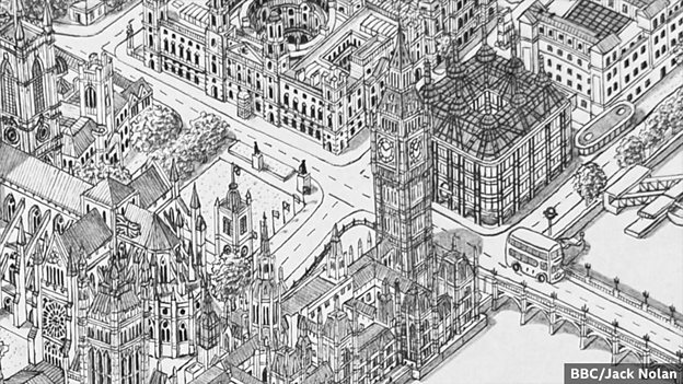 Artist spends hundreds of hours drawing central London 艺术家历时数百小时绘制伦敦城中心