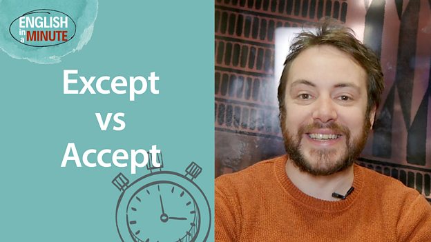 What’s the difference between ‘except’ and ‘accept’? Roy is going to tell you, Find out in this English In A Minute - our 60 second free English class. - เสร็จสมบูรณ์