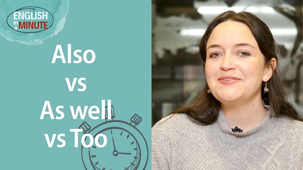 17 Jun 2020‘Also’, ‘as well’ and ‘too’ – are they exactly the same? Let Sam explain the differences between them in this English In A Minute.