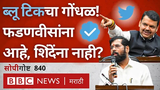 किमान ही बातमी लिहेपर्यंत म्हणजे 21 एप्रिल 2023च्या संध्याकाळपर्यंत, उपमुख्यमंत्री देवेंद्र फडणवीस यांच्या नावापुढे ब्लू टिक आहे, पण मुख्यमंत्री एकनाथ शिंदेंच्या नावपुढे नाही. याचा अर्थ असा की फडणवीसांनी ट्विटर ब्लूचं सब्सक्रिप्शन घेतलं आहे आणि शिंदेंनी नाही.