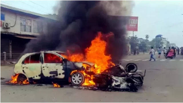 सोशल मीडियावर हिंसाचाराचे फोटो आणि व्हीडिओ मोठ्या प्रमाणावर शेअर केले जात आहे. त्यात अनेक घरं जळताना दिसत आहेत.